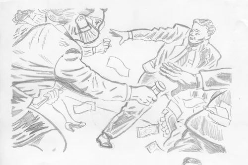 You will notice in the next stage the first thing I did was flip the composition because I felt like it flowed better. The next thing I did was increase the size of the front two people, making them large and creating more of a focus. You will see later that there are a few more problems with the composition that I have to correct.