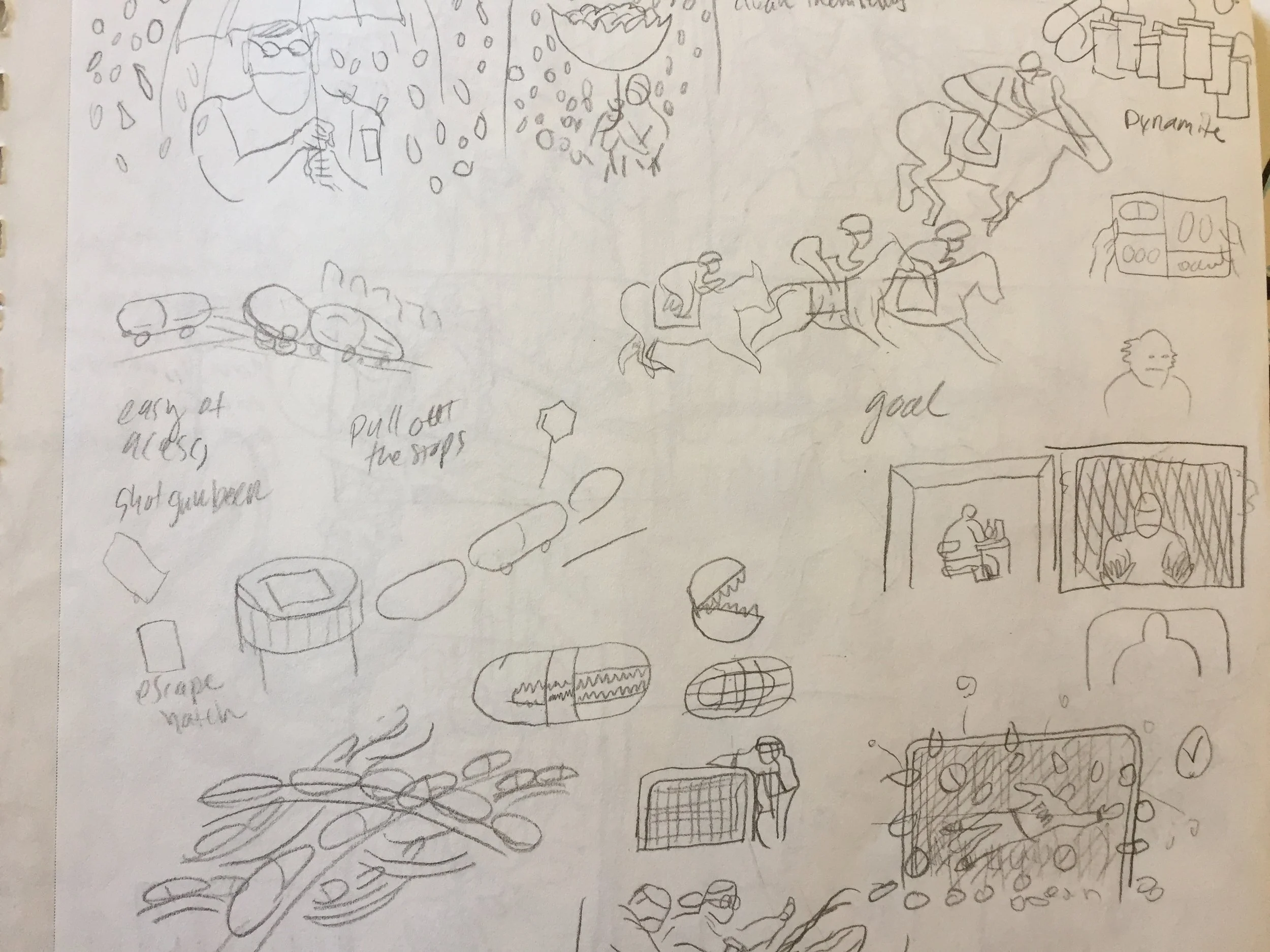 This concept emphasizes the pressure that the FDA researches are under to approve the medications and deliver the drug to the market. The only feedback the art director had was that she would like to emphasize the frantic rush of the researcher and the greed of the businessman. She suggested adding a briefcase with money flowing out of it.